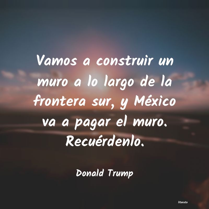 Vamos a construir un muro a lo largo de la frontera sur, y México va a pagar el muro. Recuérdenlo.