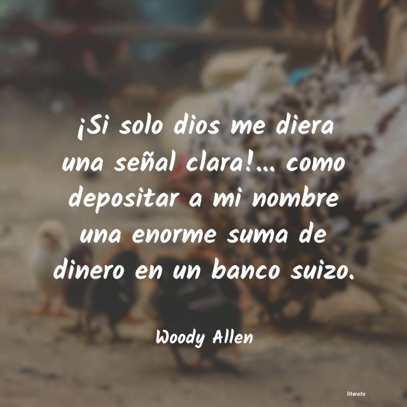 ¡Si solo dios me diera una señal clara!... como depositar a mi nombre una enorme suma de dinero en un banco suizo.