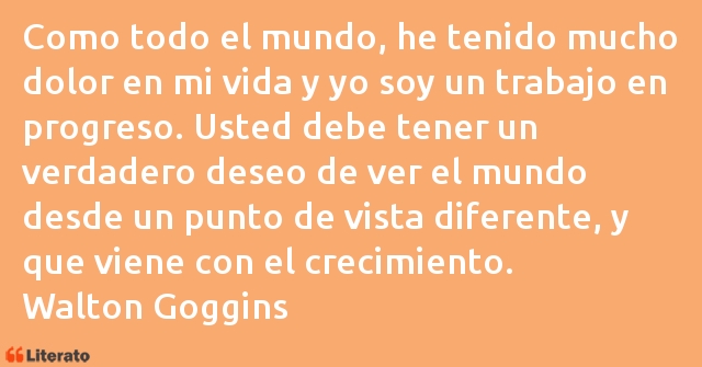 Como todo el mundo, he tenido mucho dolor en mi vida y yo soy un trabajo en progreso. Usted debe tener un verdadero deseo de ver el mundo desde un punto de vista diferente, y que viene con el crecimiento.
