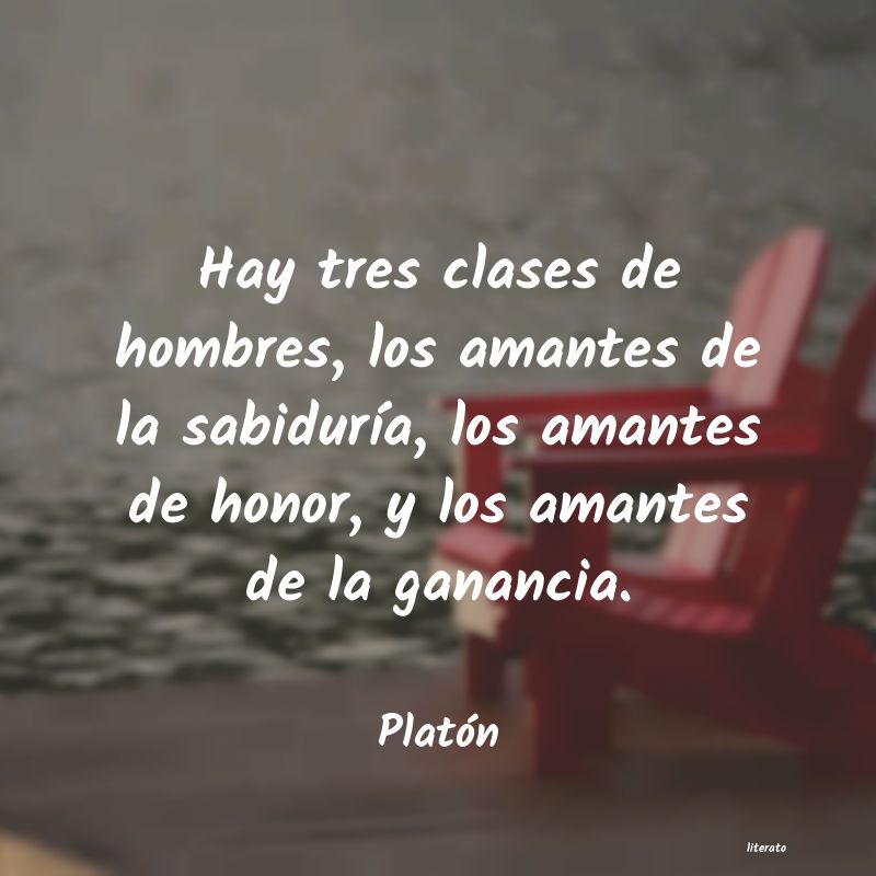 Hay tres clases de hombres, los amantes de la sabiduría, los amantes de honor, y los amantes de la ganancia.