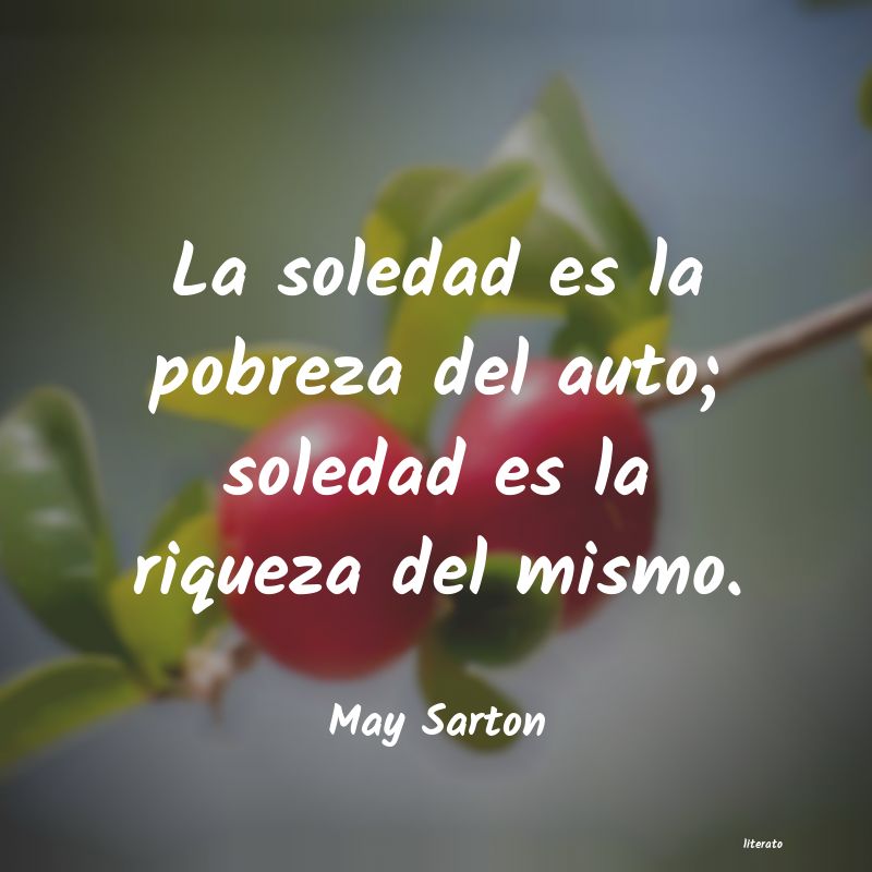 May Sarton: La soledad es la pobreza del a...
